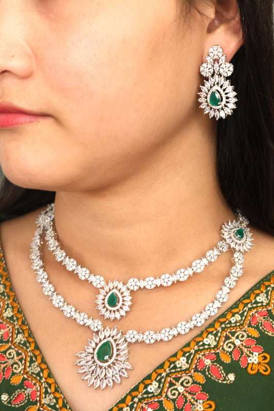 American Diamond CZ Classic Necklace Emerald Green Stone