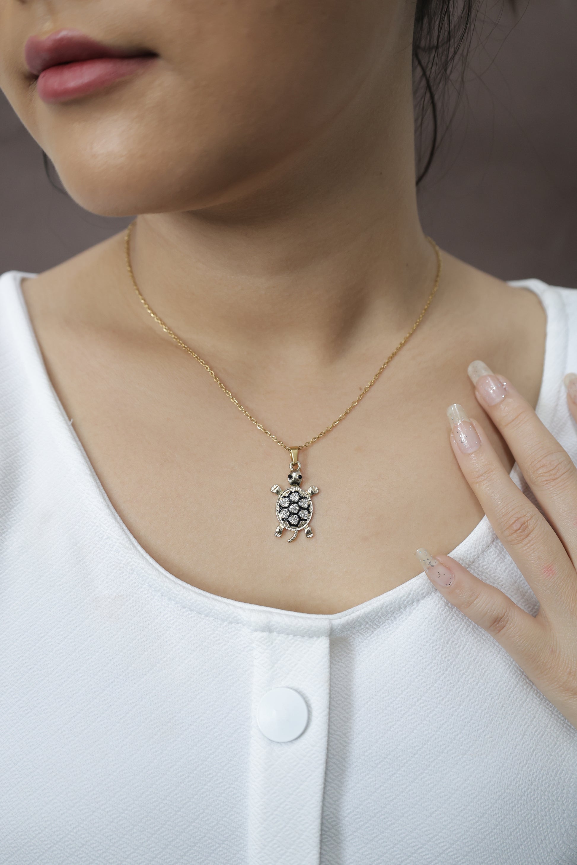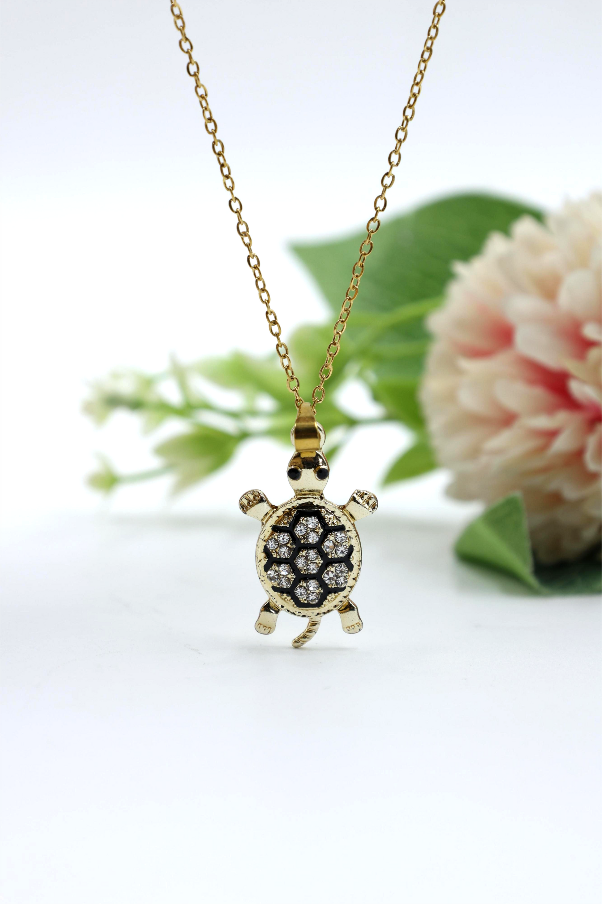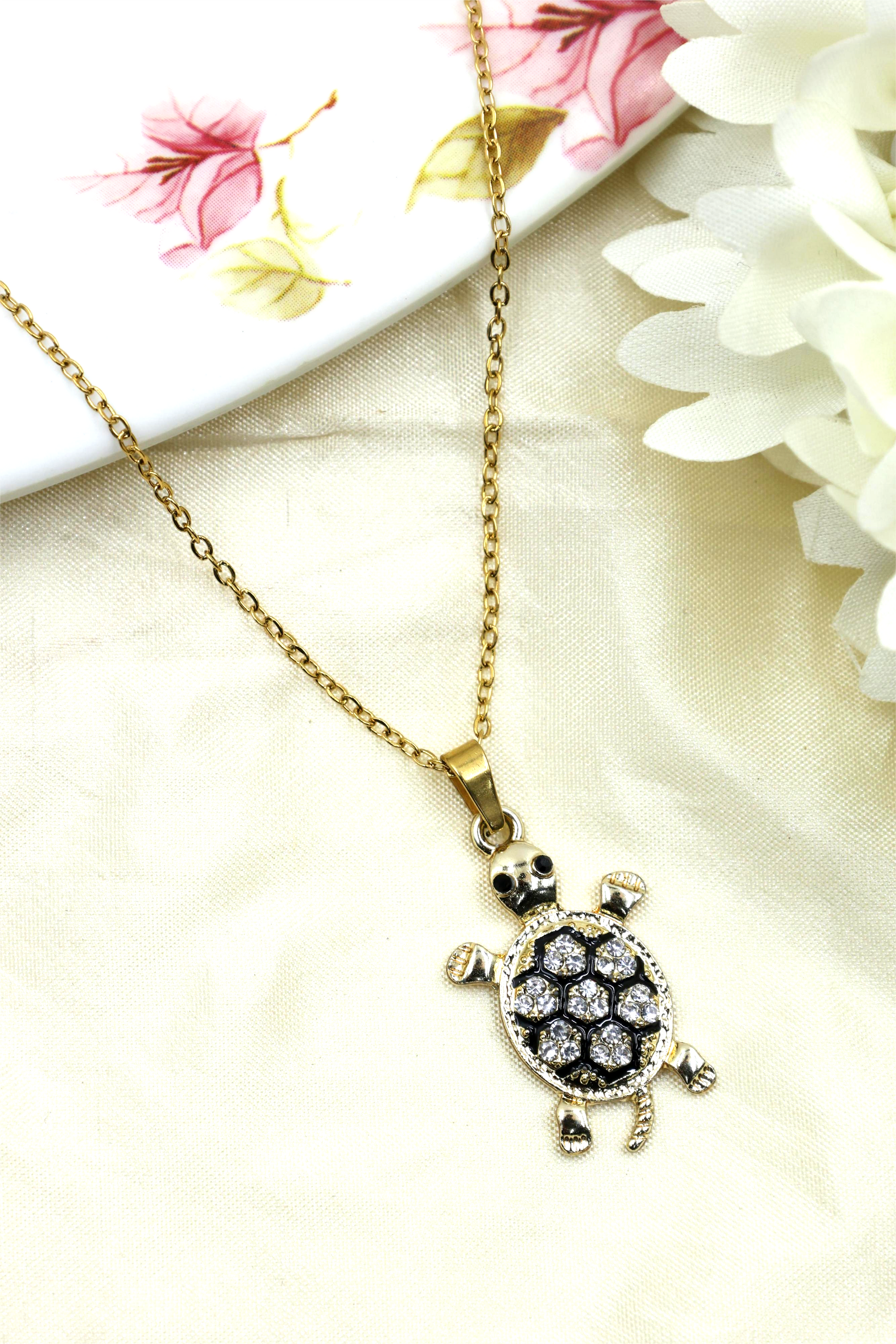 Crystal-Studded Turtle Pendant Necklace