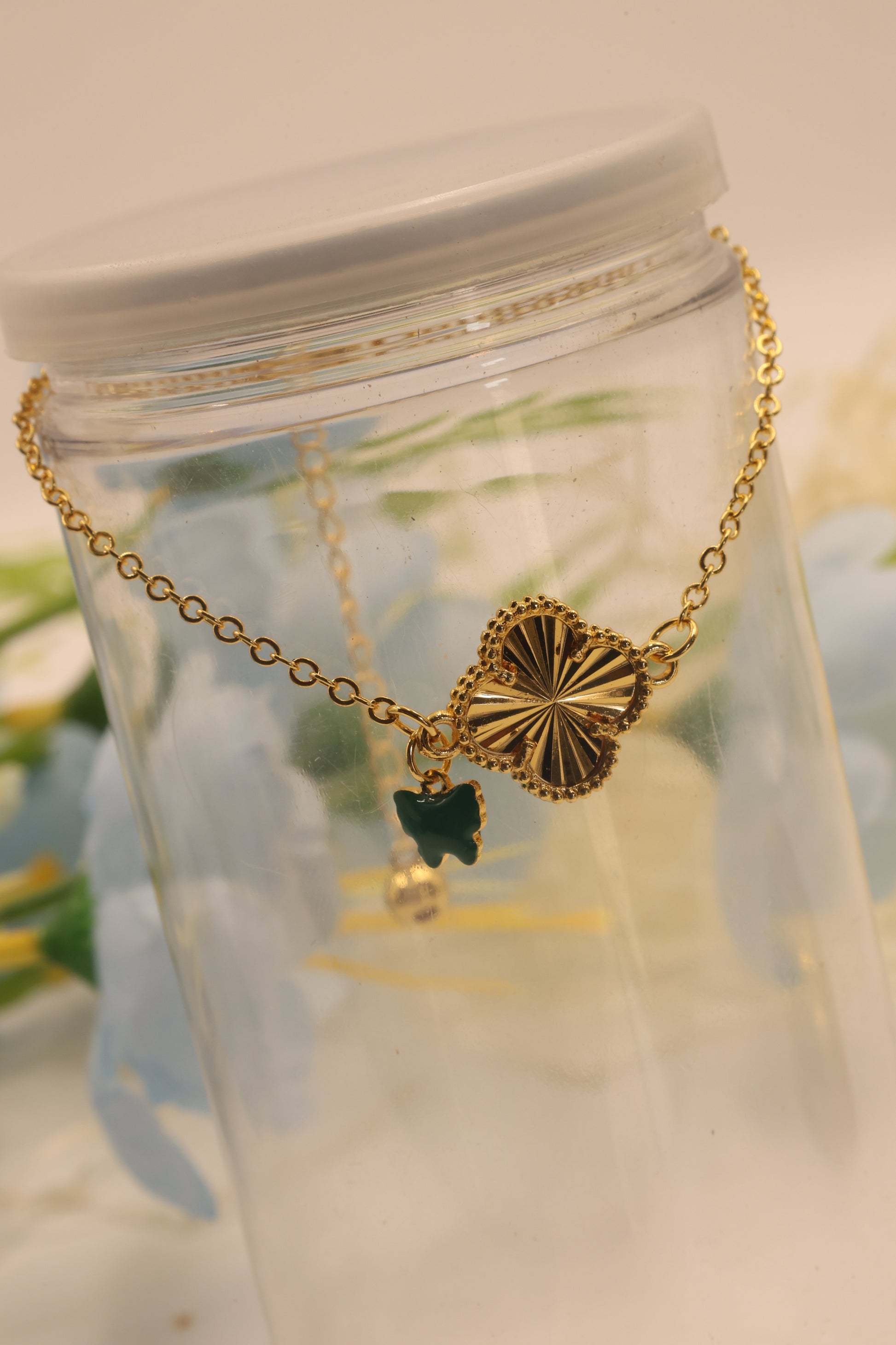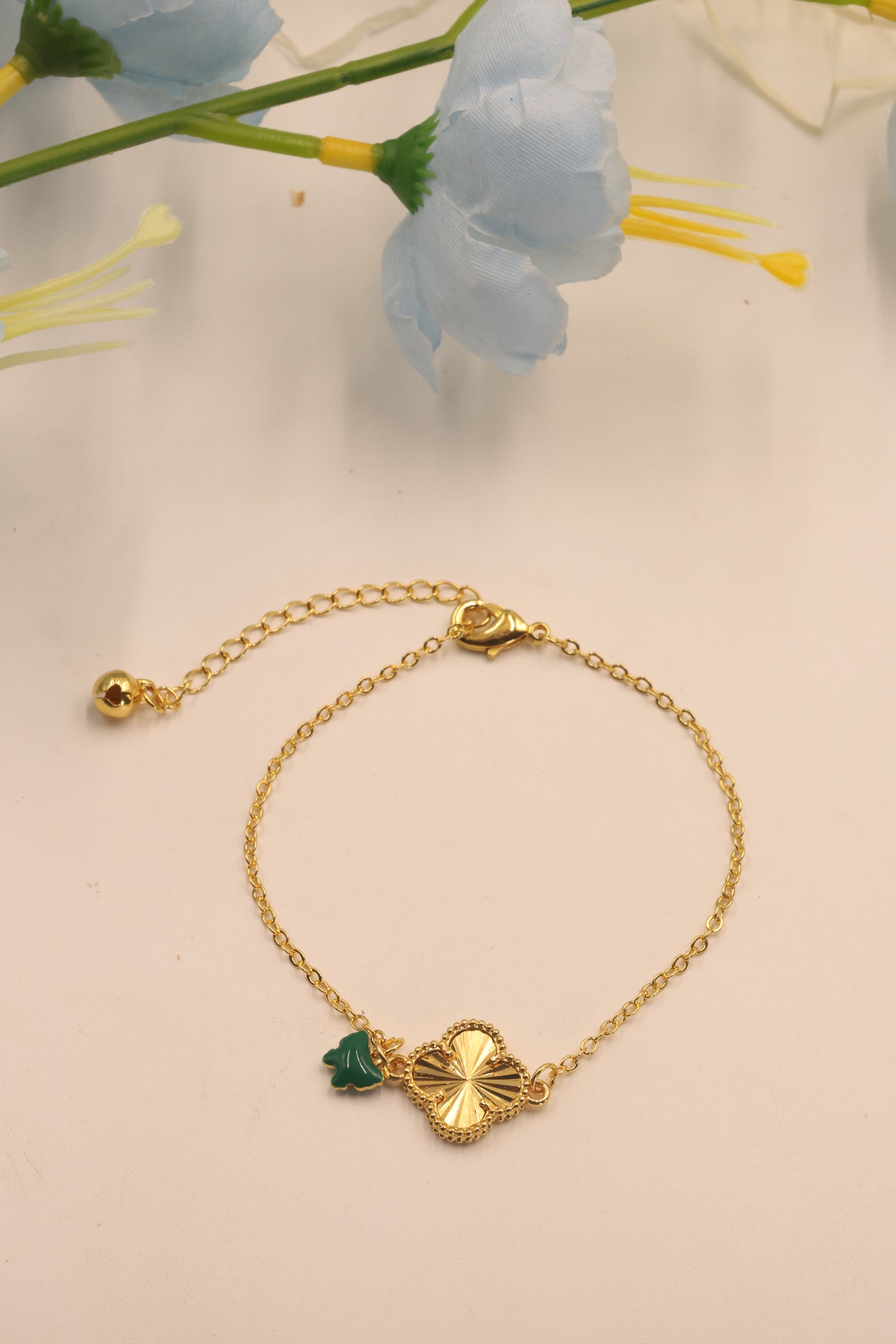 Celebrate charm and grace with the Emerald Bloom Clover Bracelet, a delicate gold-plated piece adorned with a radiant clover centerpiece and a tiny green floral enamel charm. With its adjustable fit and lightweight design, it's a versatile accessory for all ages and occasions—whether you’re gifting it or treating yourself.