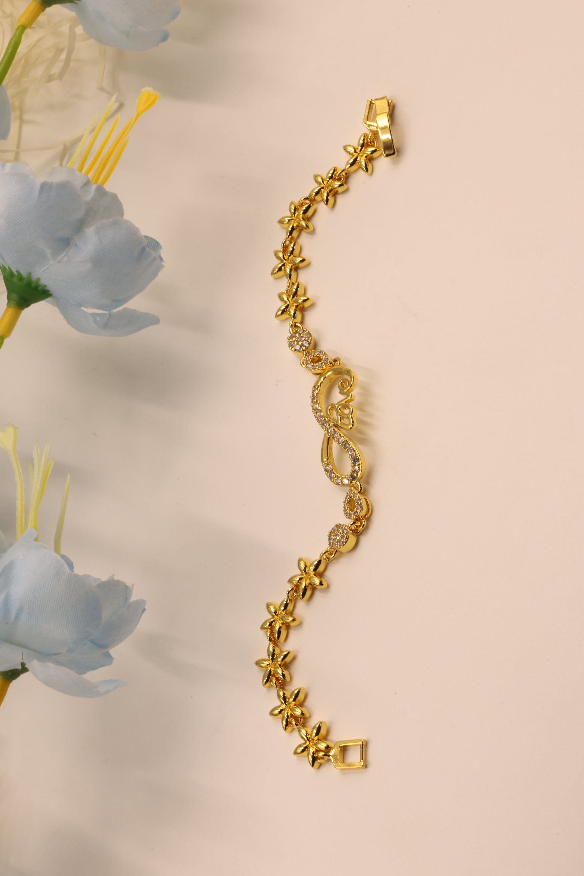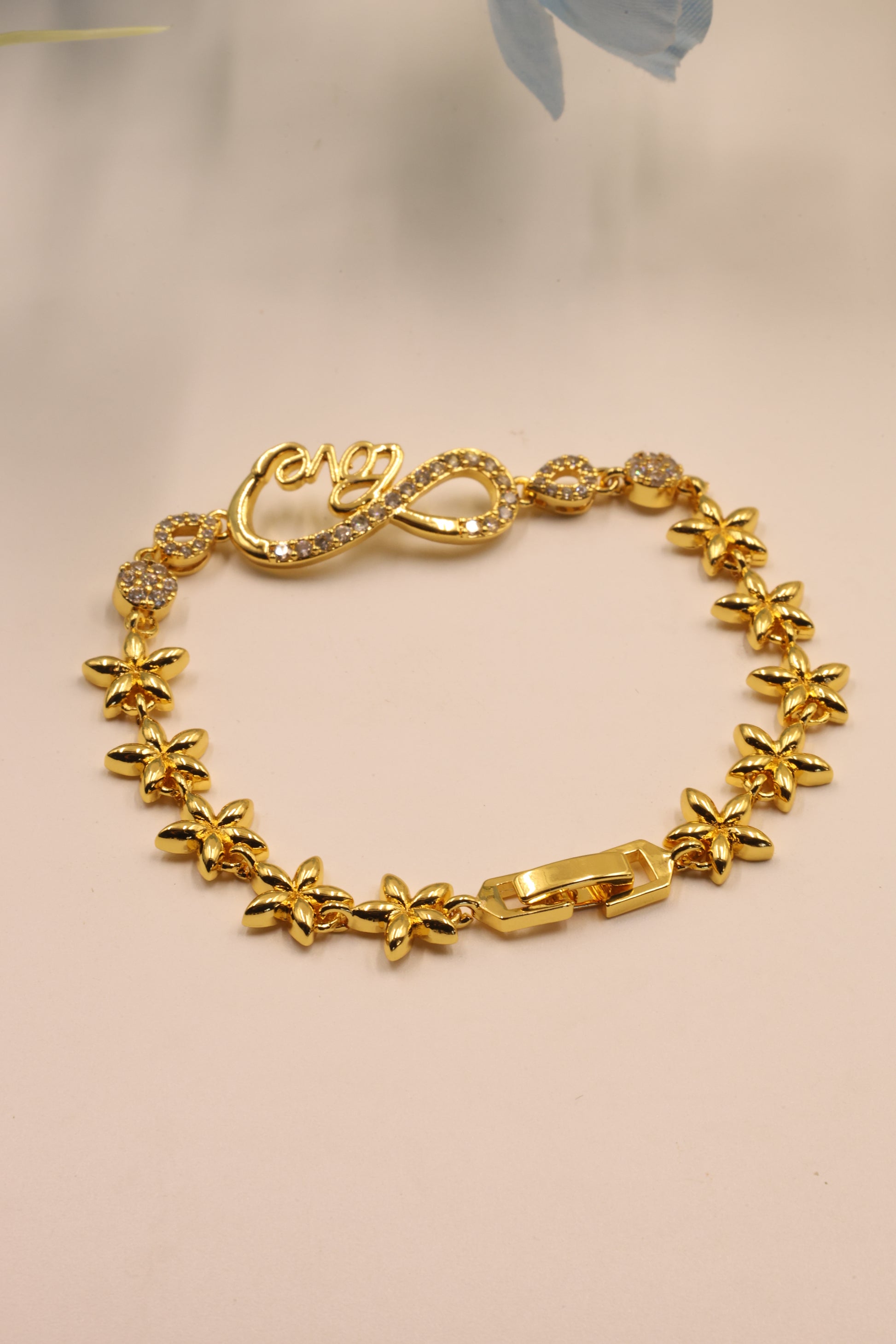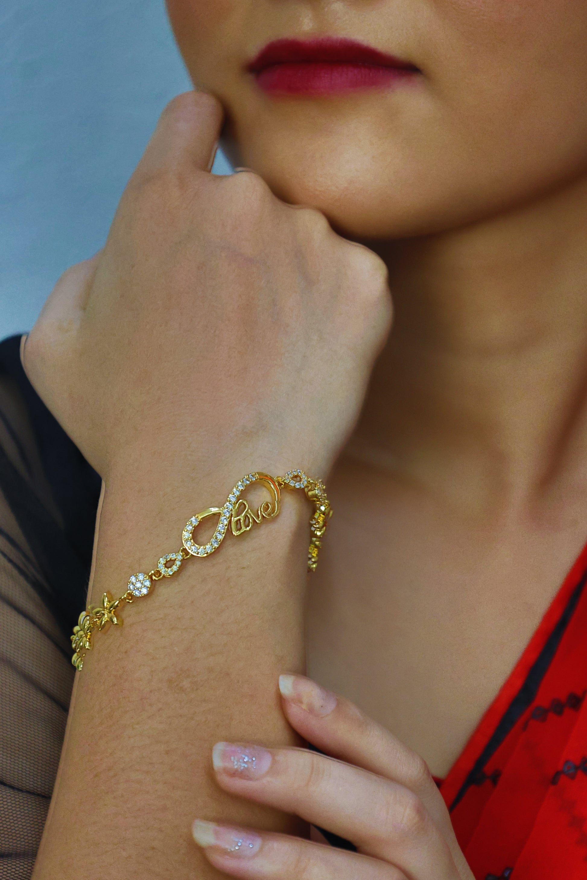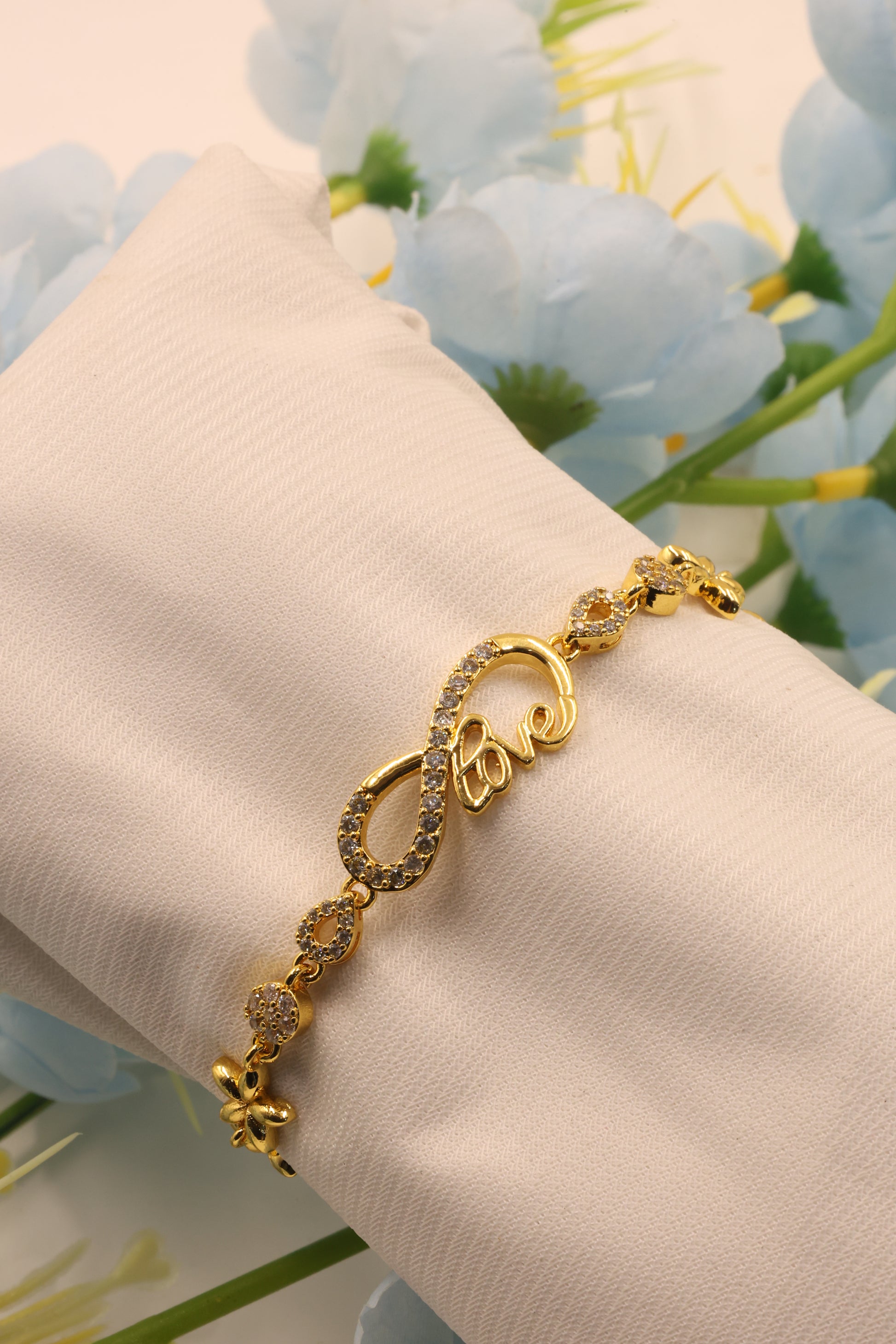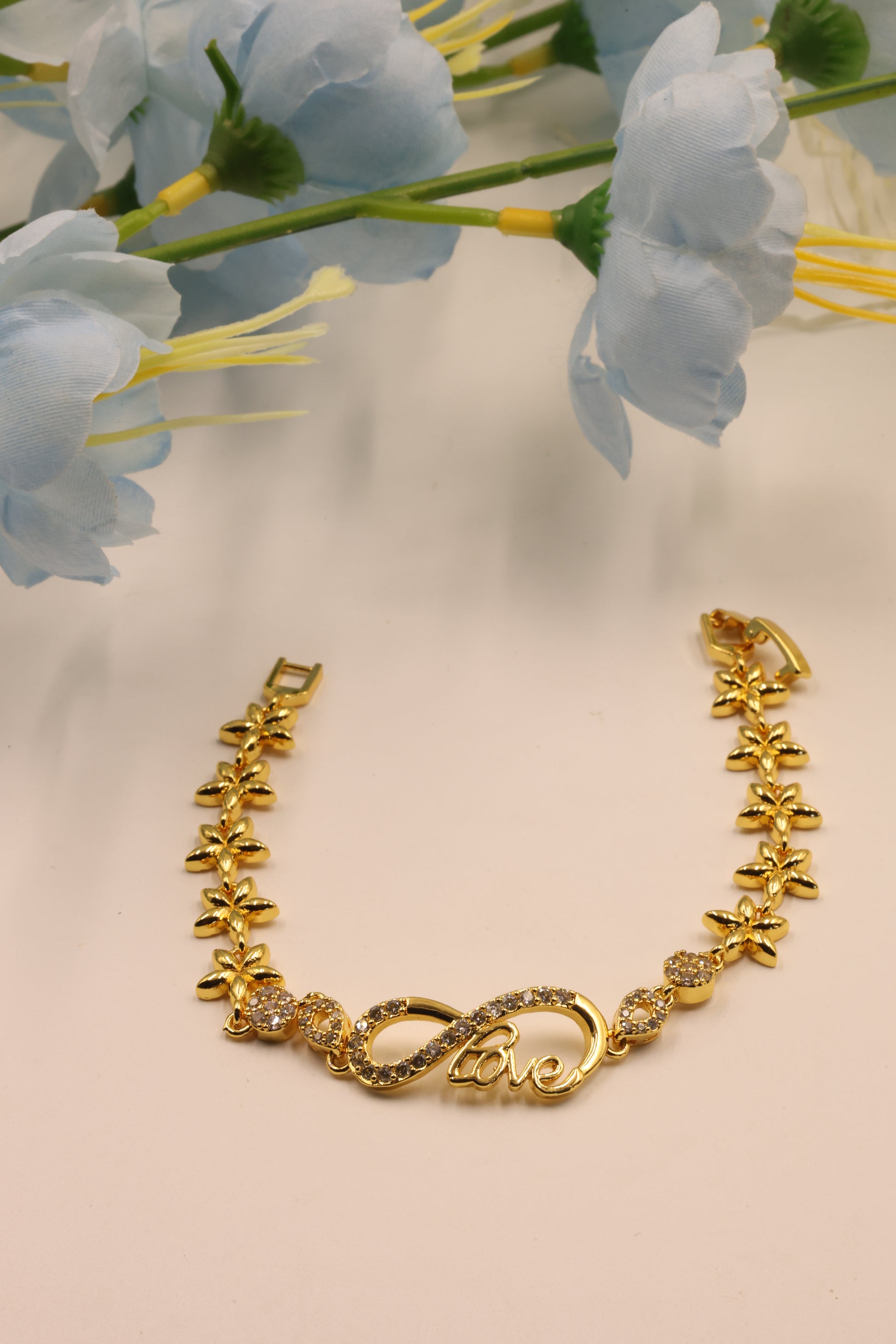 Celebrate eternal affection with the Eternal Bloom Love Bracelet—a mesmerizing piece that blends delicate floral links with a dazzling infinity motif. Adorned with sparkling CZ stones and a romantic “love” script, this bracelet is a timeless expression of enduring bonds.
