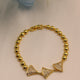 Celebrate elegance with a twist in the Golden Charm Bell Bracelet with CZ Sparkle. Featuring highly polished gold-toned beads and three bell-shaped charms studded with dazzling cubic zirconia stones, this bracelet radiates charm and festive energy.