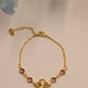 Add a graceful touch to your wrist with the Royal Clover Charm Bracelet – Luxe Minimal Edition. This elegantly crafted bracelet features a radiant gold clover motif at its center, surrounded by glimmering purple glass stones.
