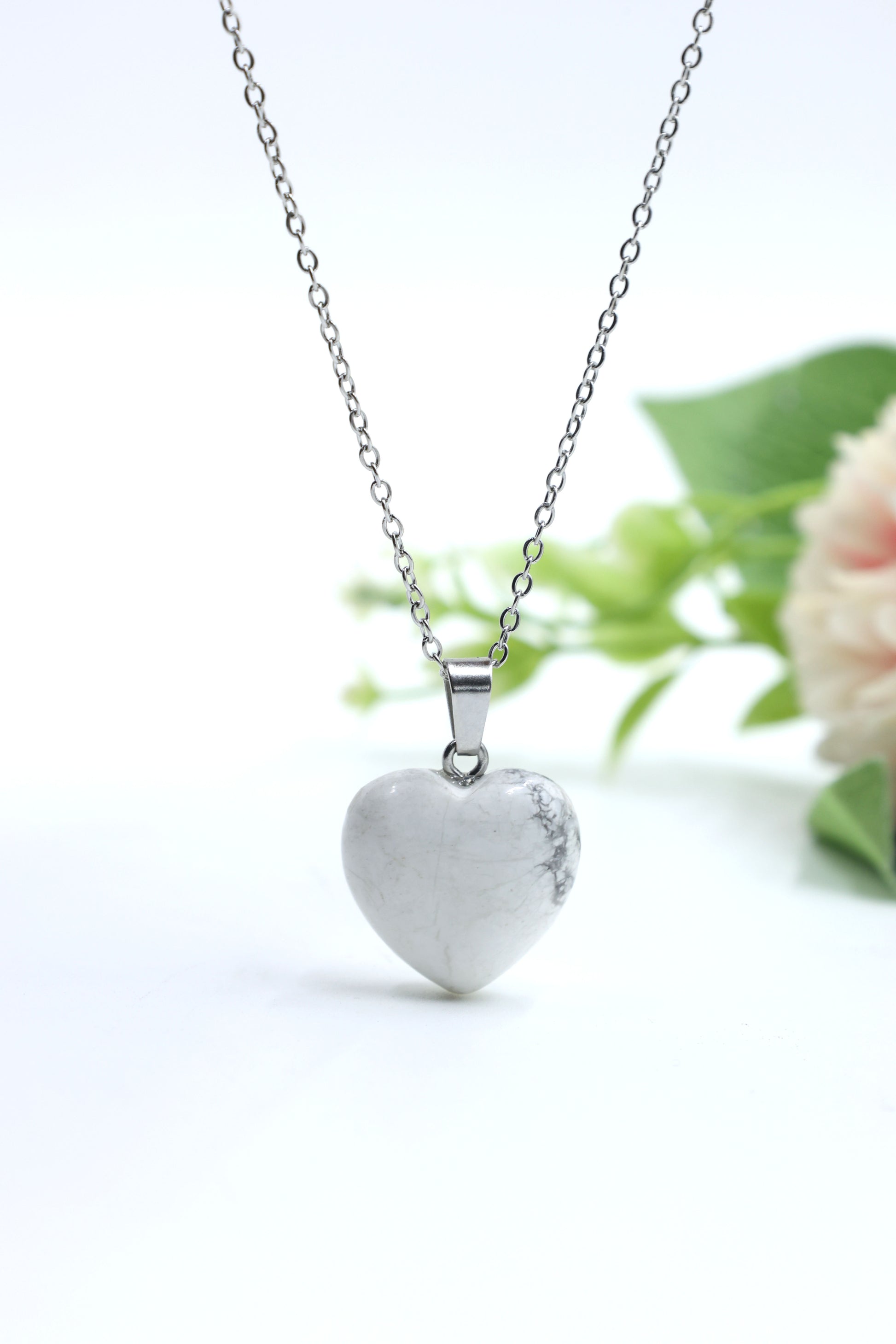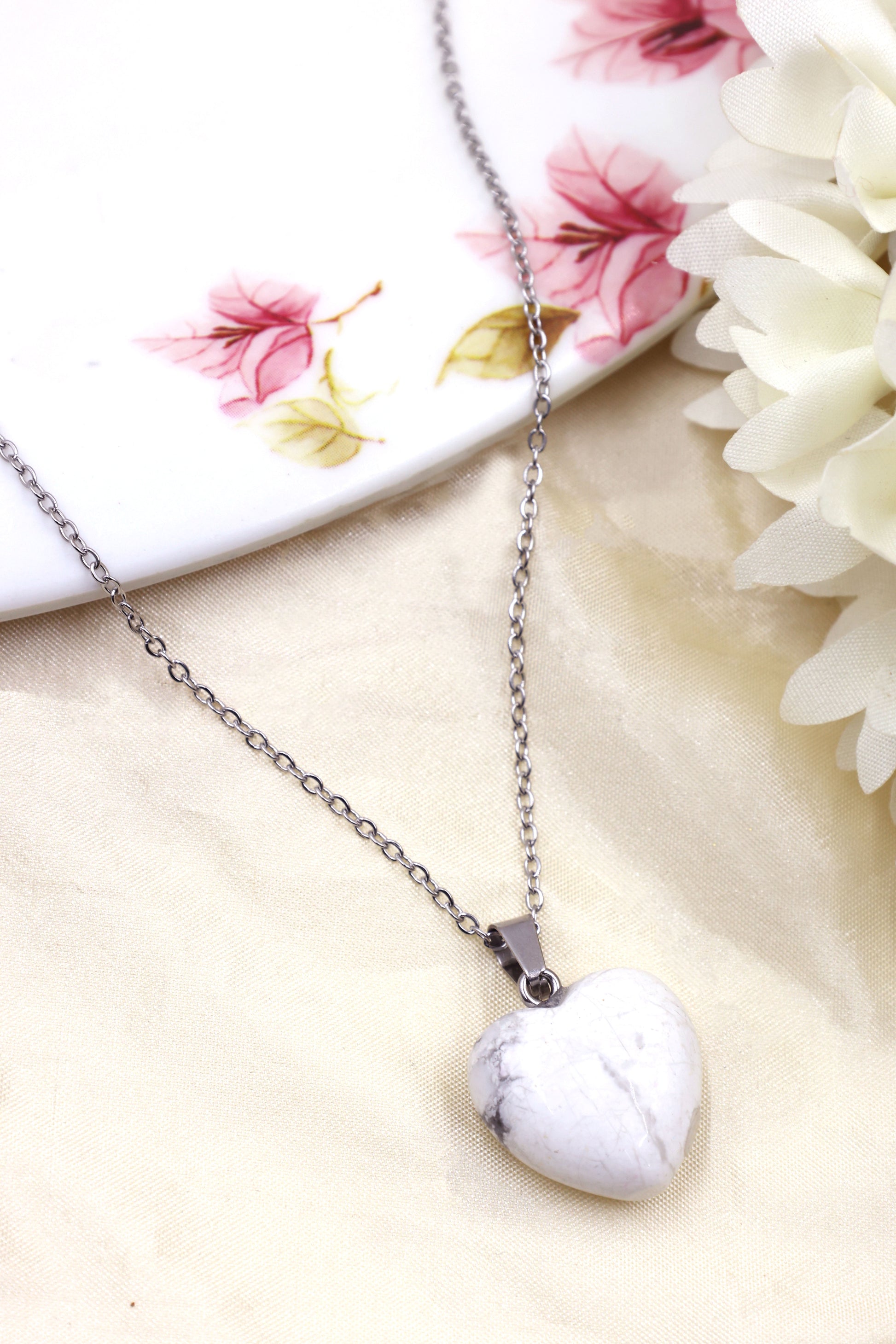 White Marble Resin Heart Pendant Necklace
